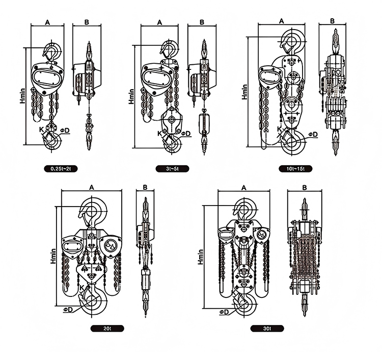 Avant l'utilisation, vérifiez soigneusement que le poids des marchandises soulevées ne dépasse pas la charge nominale de 5 tonnes de ce palan à chaîne HSC 5T. Vérifiez en même temps si les éléments de freinage et les chaînes de levage sont déformés ou tordus. Effectuez un test de machine à vide pour confirmer le bon fonctionnement sans aucune anomalie.