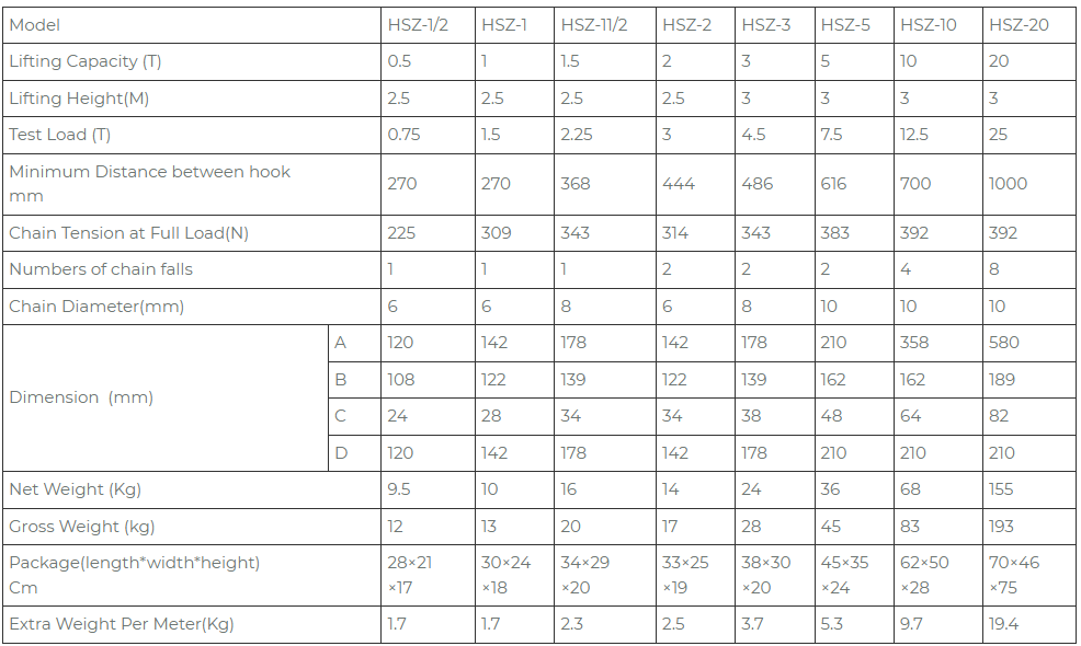 Hebei BaiYi usine de haute qualitéPalan à chaîne manuel de type HSZnuméro multi-type de division, numéro de type de racine, sélection de qualité, nombre d'échantillons techniques disponibles pour référence :