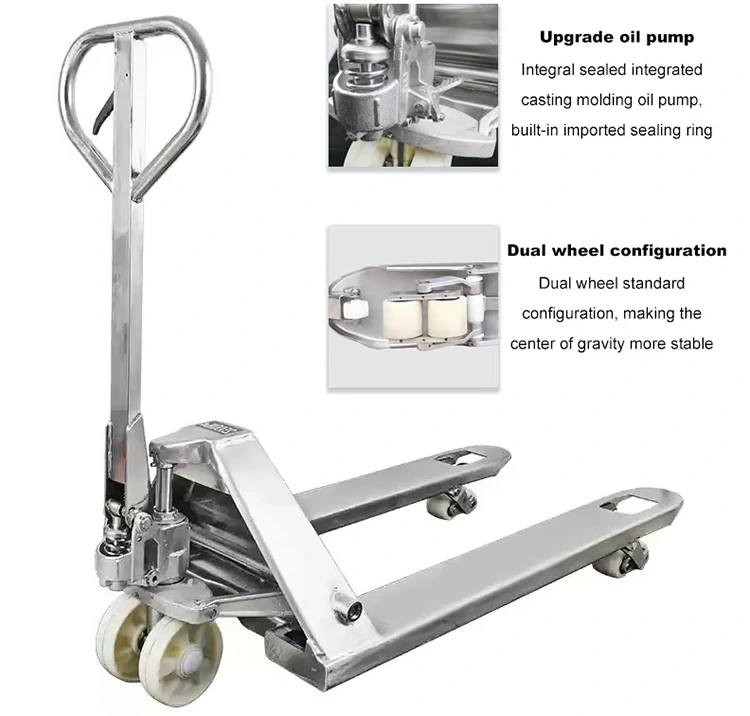 2 Le transpalette en acier inoxydable est conçu pour contribuer à augmenter la productivité et l'efficacité.